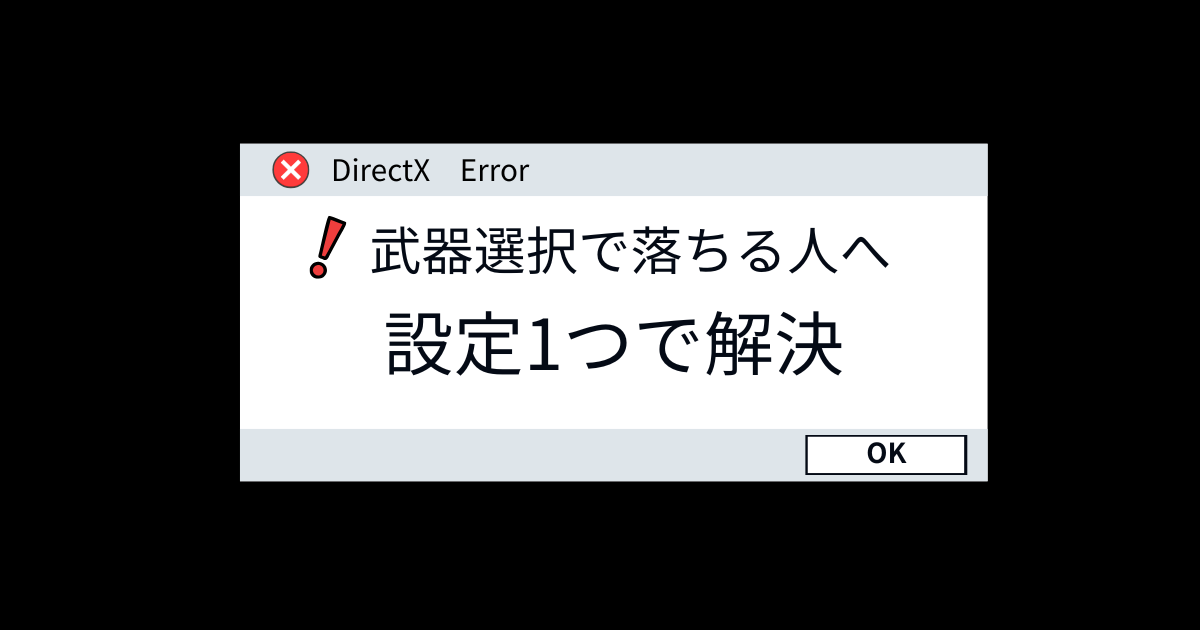 ・武器選択で落ちるのはVRAM系エラーの可能性が高い