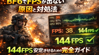 初心者向けPC BF6でFPSが出ない原因と対処法|144FPS安定させるための完全ガイド BF6でFPSが出ない・カクつく原因を初心者向けに解説。CPUボトルネックやGPU性能不足の見分け方から、144FPSを安定させるおすすめPCパーツ(CPU・GPU・メモリ)まで分かりやすく紹介します。 2026.04.01 初心者向けPC
