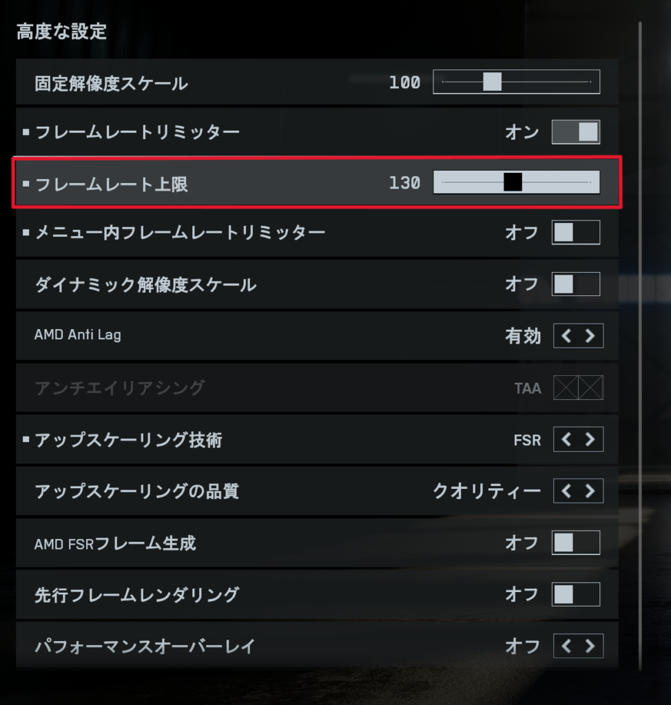 実際の設定画面を見ながらFPSを安定させる